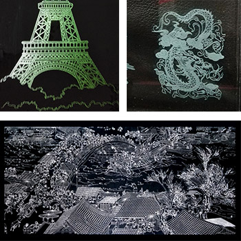 材料: 花崗石、大理石、紙張、皮革布料、亞克力、塑料    、  水晶、玻璃、工藝品、竹木制品等非金屬。